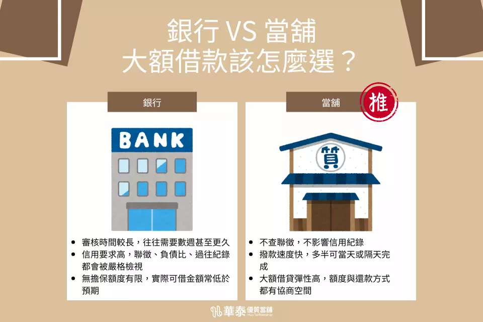 相較於銀行,新竹當舖借款在評估大額借貸時,思考邏輯其實很不一樣。
